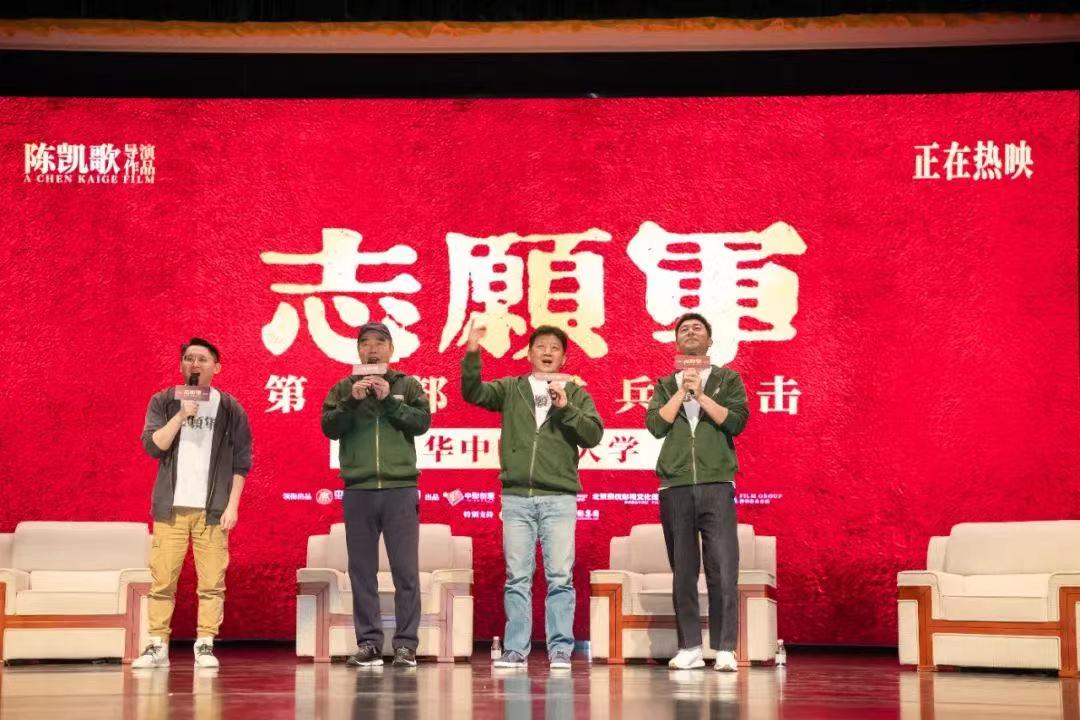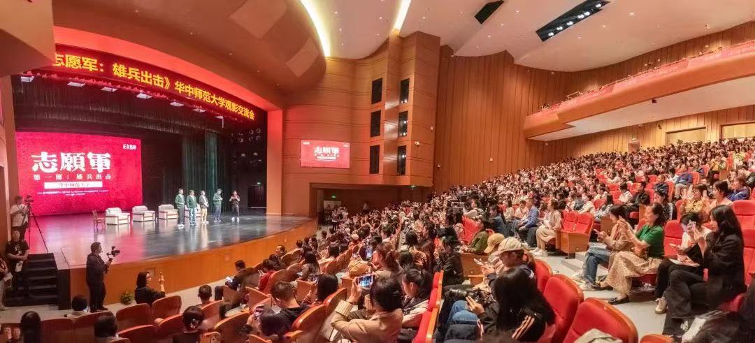 华大在线讯(记者 郝日虹 曾楚航)为深入学习贯彻习近平文化思想,进一步弘扬伟大抗美援朝精神,强化师生爱国强军意识,10月22日,《志愿军:雄兵出击》观影交流会在华中师范大学大学生活动中心大礼堂举行。导演陈凯歌携编剧张珂,主演王砚辉、朱亚文等电影主创团队,与我校师生交流分享影片幕后故事。湖北省委宣传部常务副部长邓务贵,湖北长江电影集团党委书记、董事长朱雨龙,湖北长江电影集团党委委员、纪委书记、省监委驻集团监察专员彭华,校长郝芳华、副校长任友洲、李鸿飞,校党委副书记陈迪明等出席观影交流会。