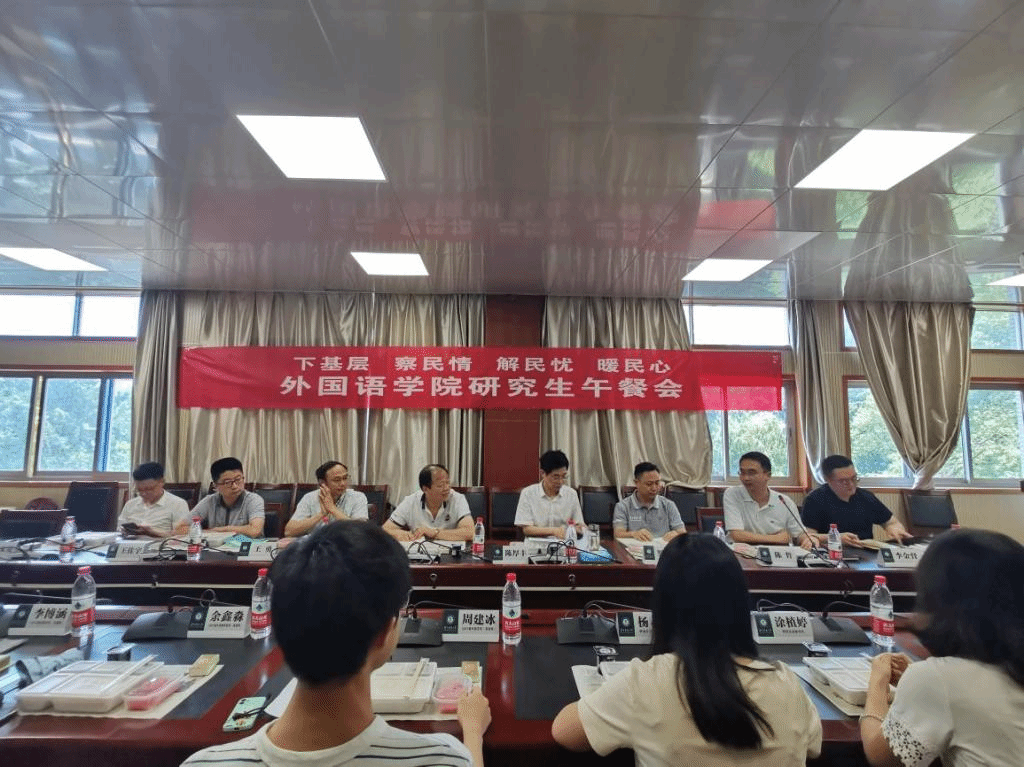 华大在线讯(通讯员 李金督)根据学校党委关于开展党员干部“下基层、察民情、解民忧、暖民心”实践活动安排,6月14日,校党委副书记、纪委书记陈厚丰参加外国语学院研究生午餐会,深入联系学院、深入师生群体走访调研。外国语学院党政领导班子与来自五个语种、三个年级的12名研究生代表参加午餐会。