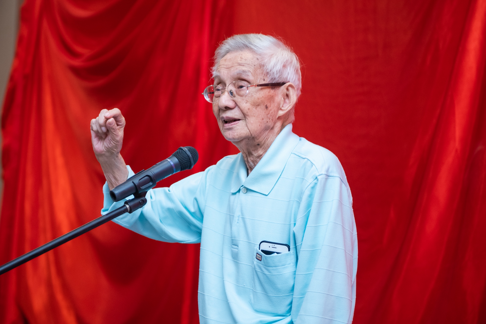 华中师范大学历史文化学院博士生导师熊铁基先生讲话。熊老先生介绍了校博物馆的缘起——源于1951年华中大学国学大师钱基博先生领衔筹建捐赠,讲述了自己作为华师第一代博物馆讲解员亲身经历和见证了我校博物馆70年来的变迁和发展,钱基博老先生70年来的愿望终于在今天实现了。他希望校博物馆多将有价值的文物展示给大家,从而更好地发挥博物馆文化育人、文化传承的作用和使命。